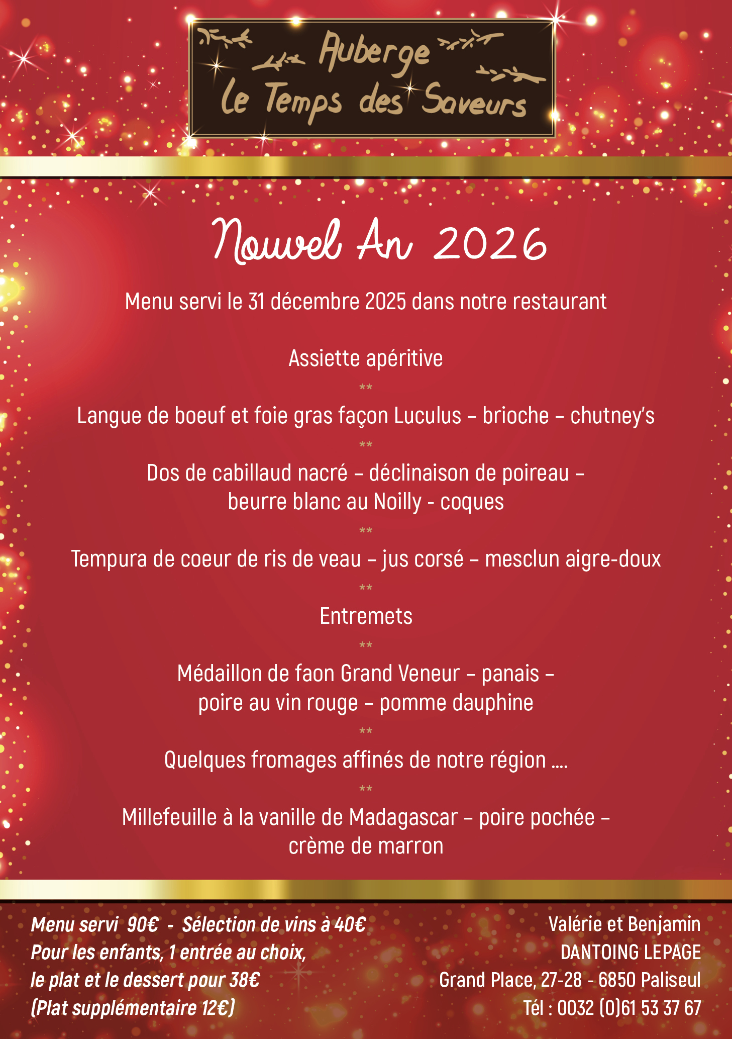 A l’occasion du Nouvel An nous vous proposons un forfait 2 nuits à l’auberge :